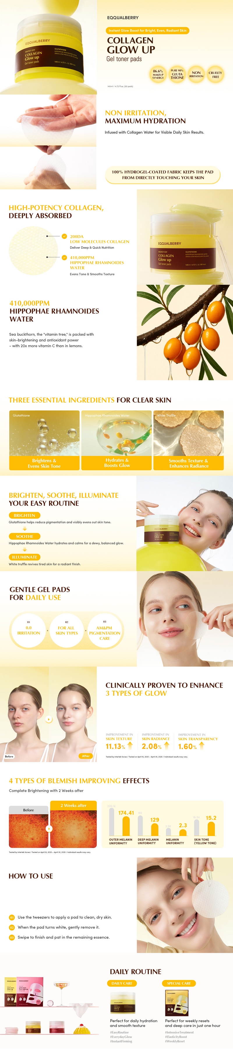 EQQUALBERRY COLLAGEN GLOW UP GEL TONER PADS 140ml (60 Pads)